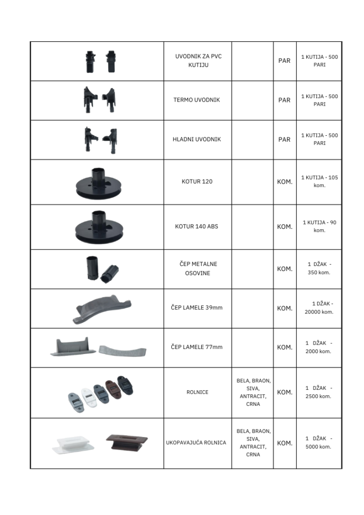 PLASTIC PARTS FOR BLINDS